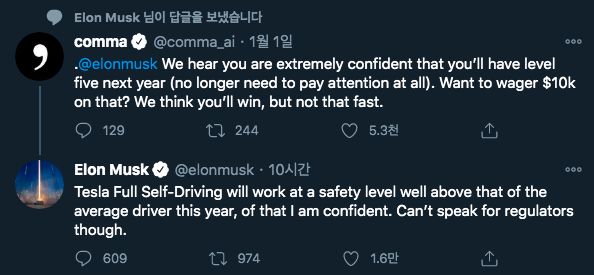 2021년 1월 1일에 지오핫이 트위터로 머스크에게 질문을 던졌다.